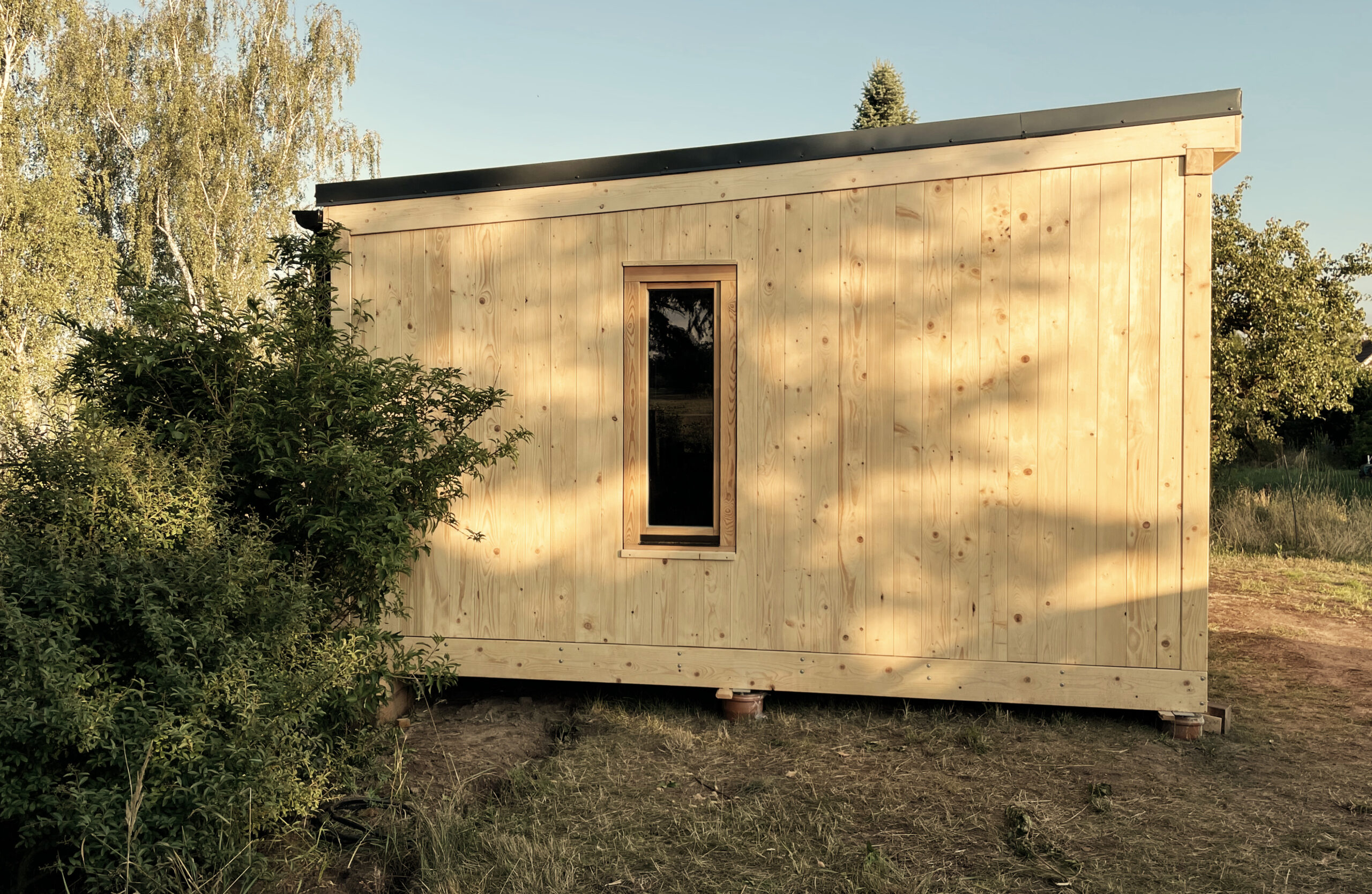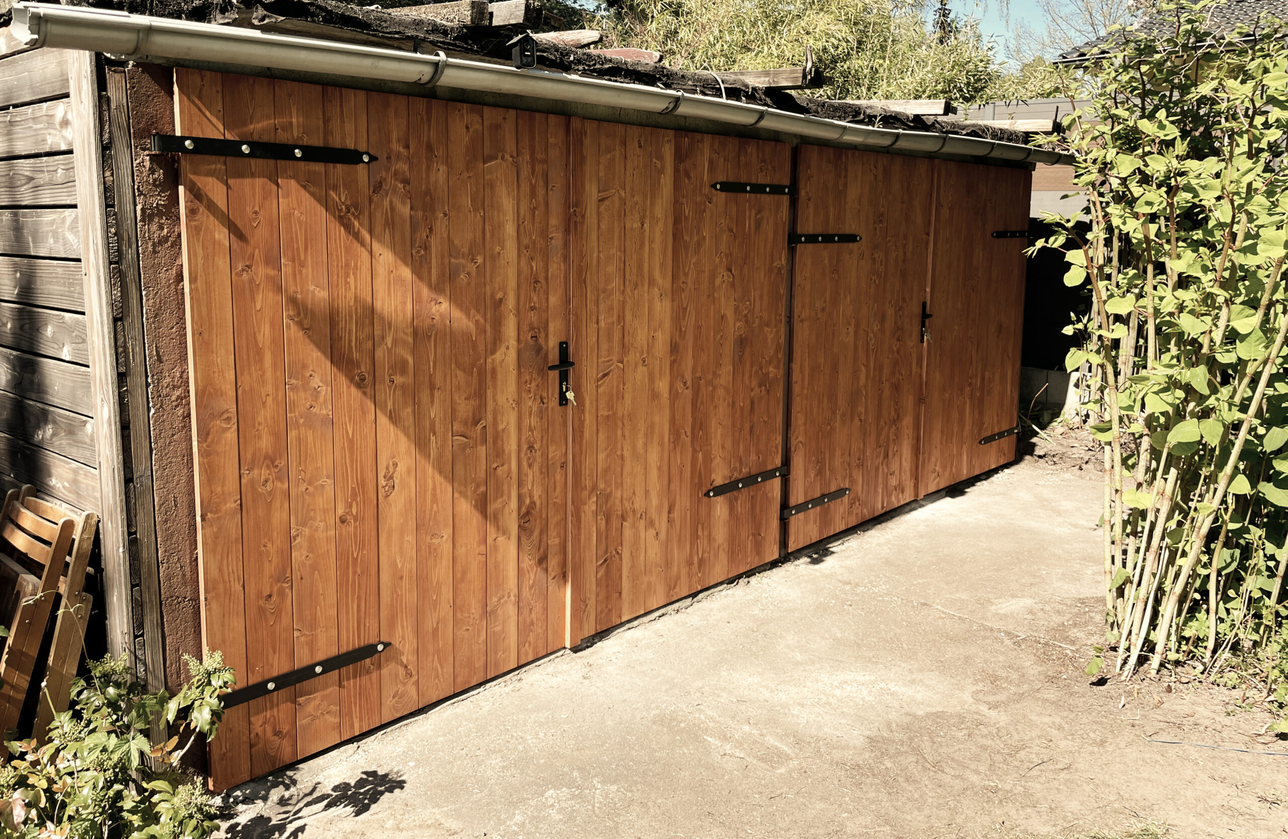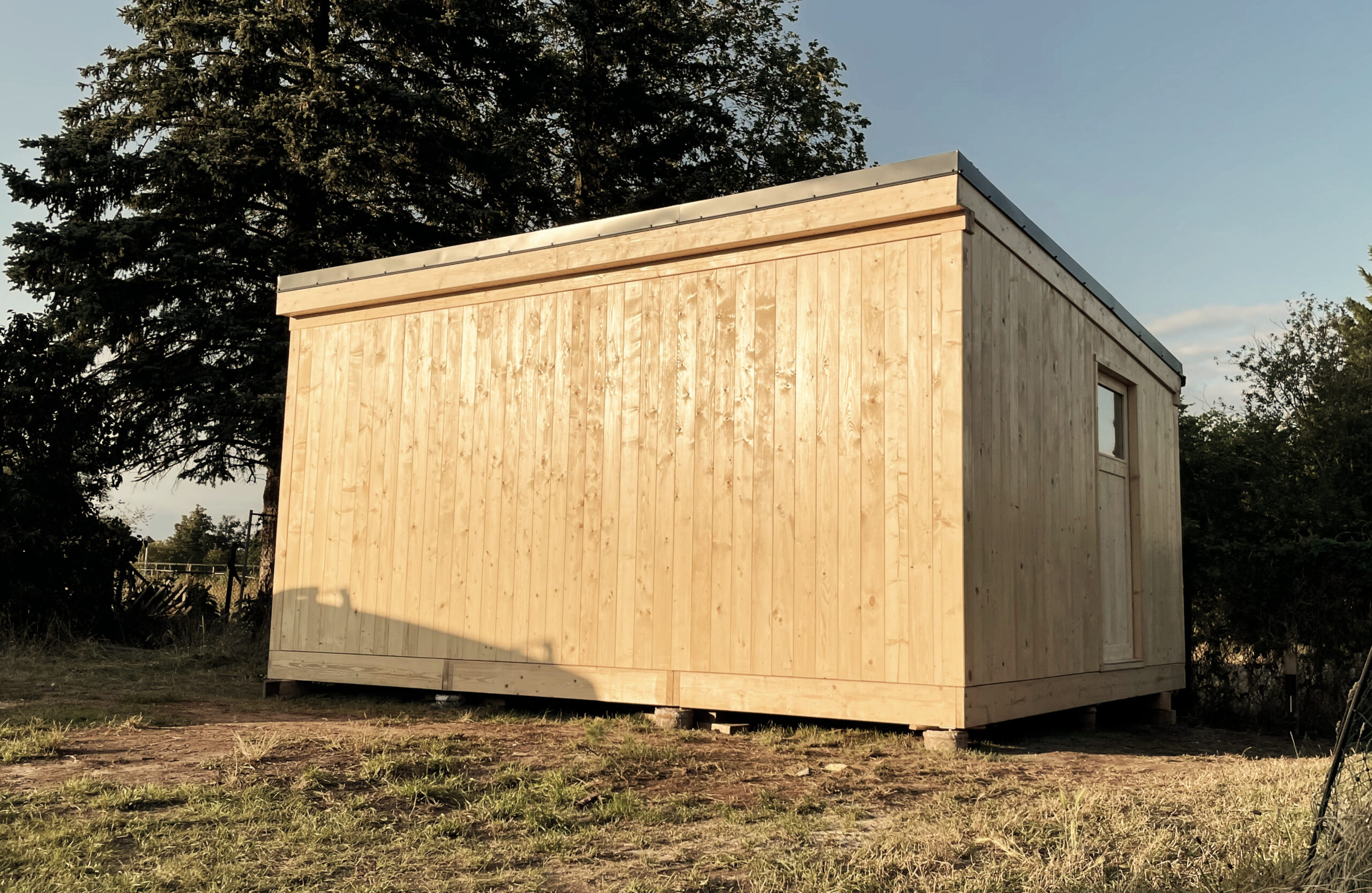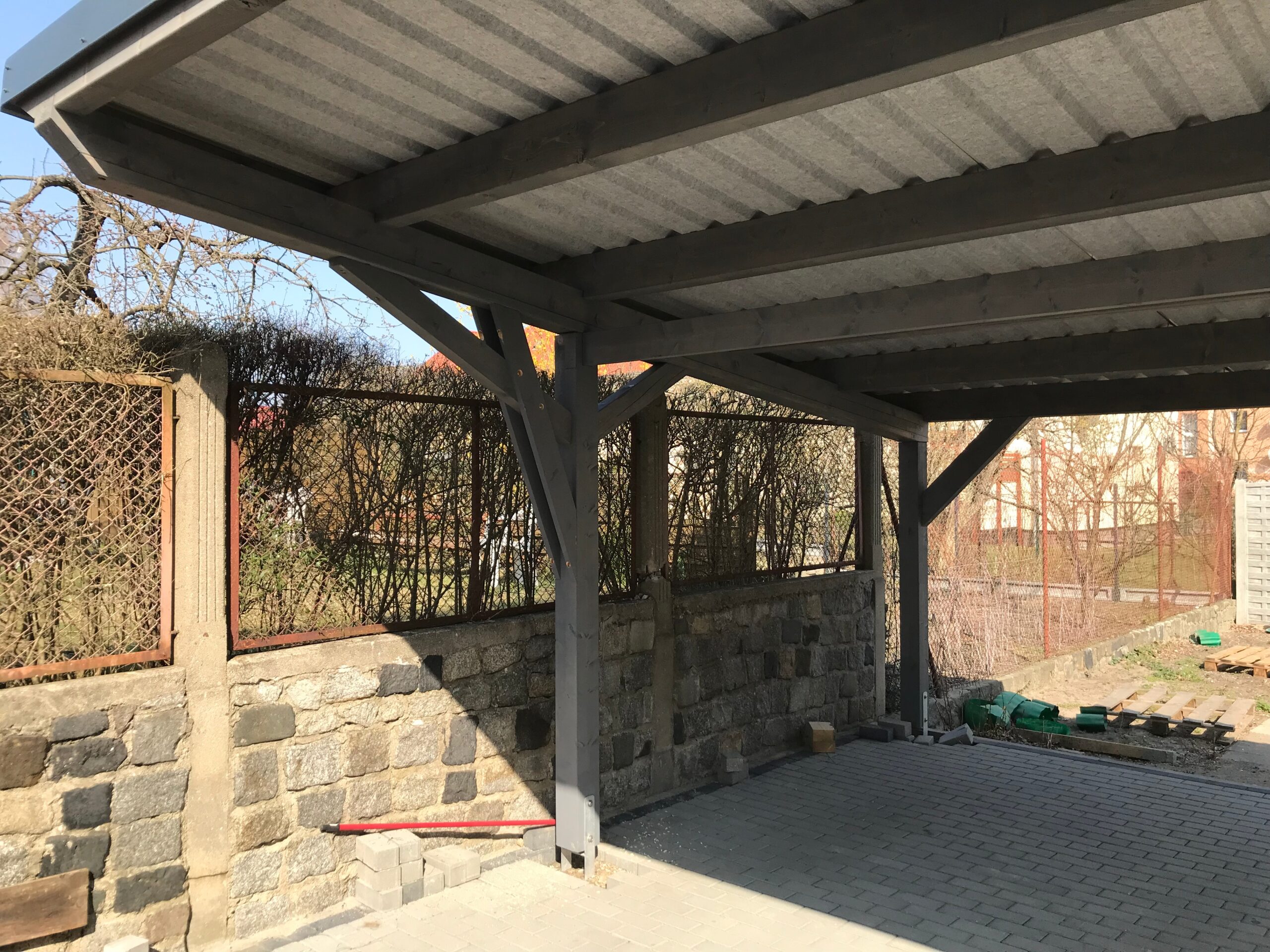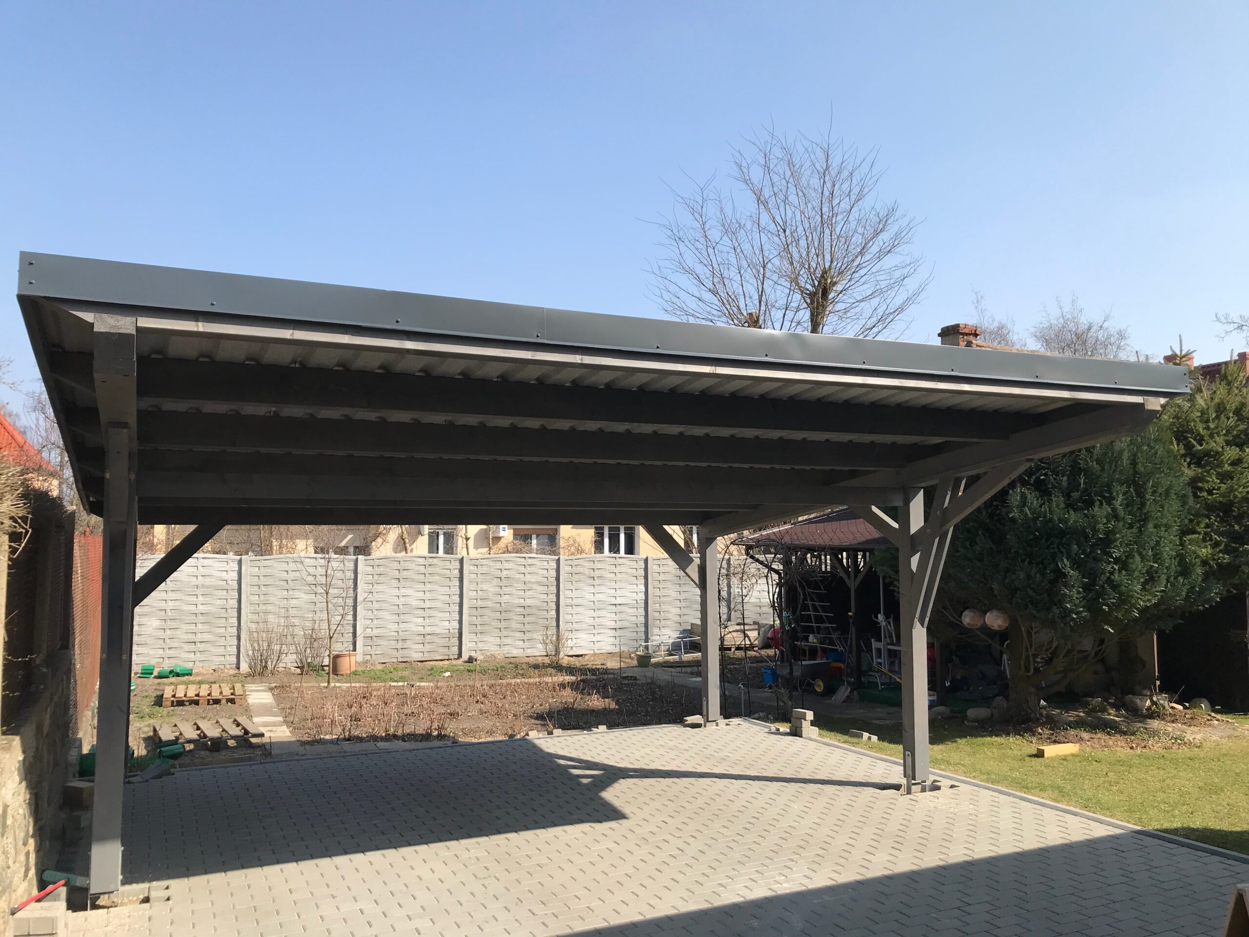 Carport dwustanowiskowy z domkiem narzędziowym