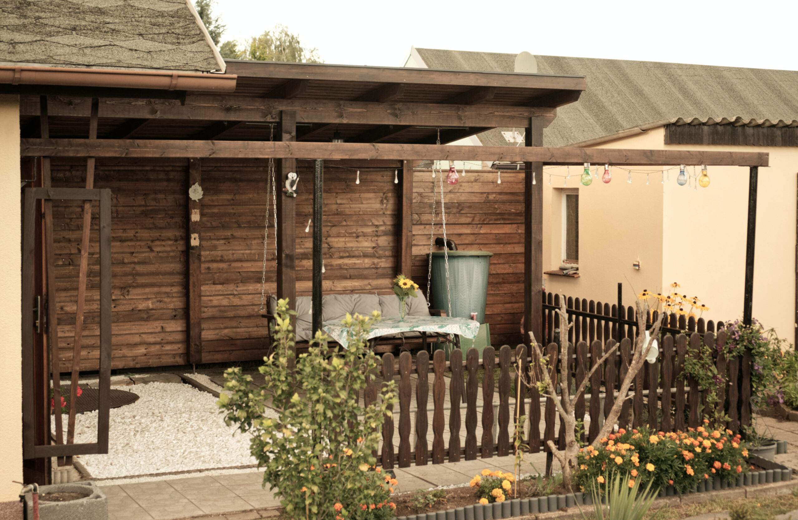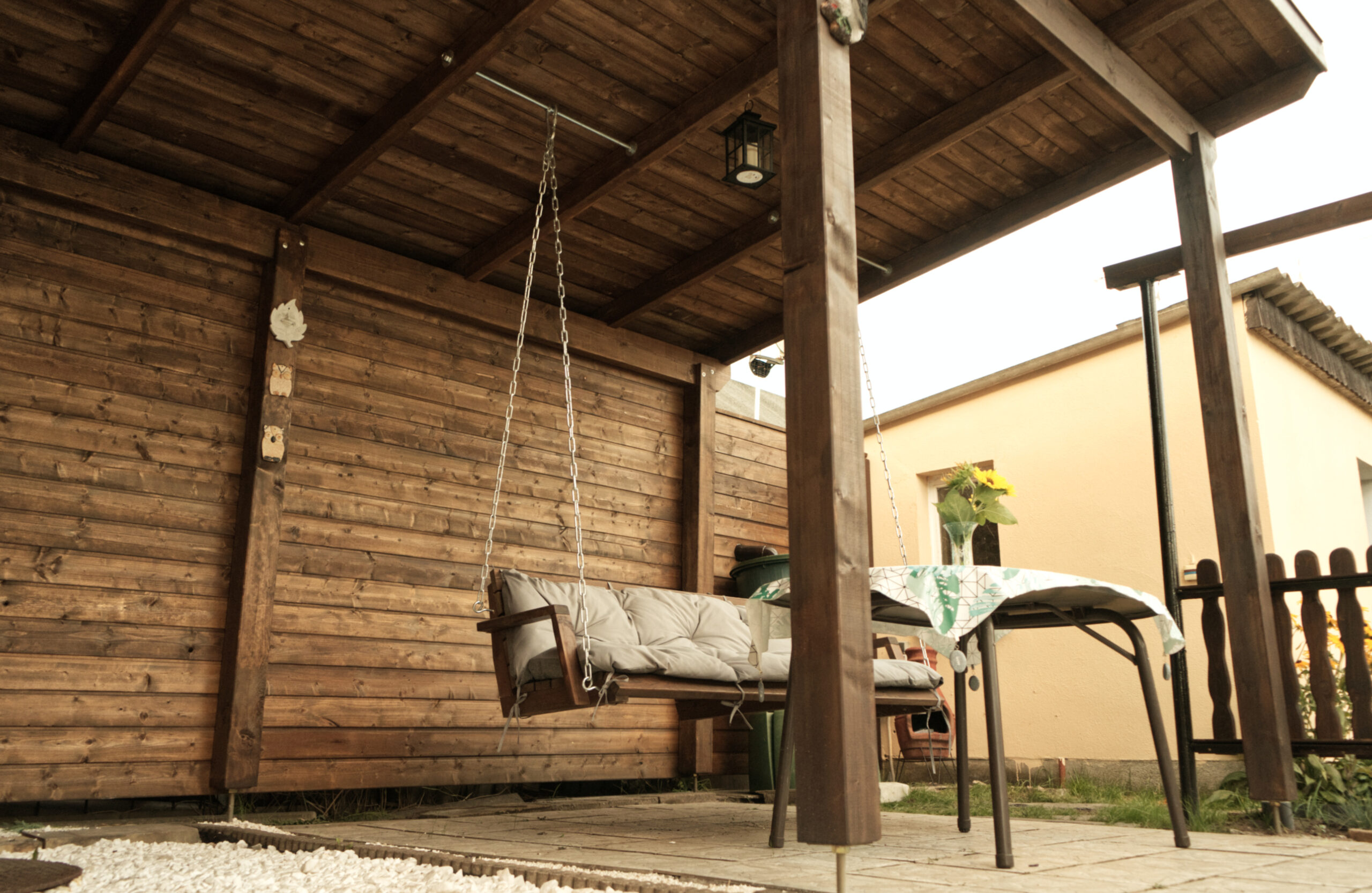 Zadaszenie ogrodowe z huśtawką